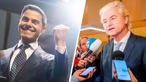 Valsegraren Rob Jetten (D66) till vänster och högerpopulisten Geert Wilders (PVV) till höger. Foto: Heute at.